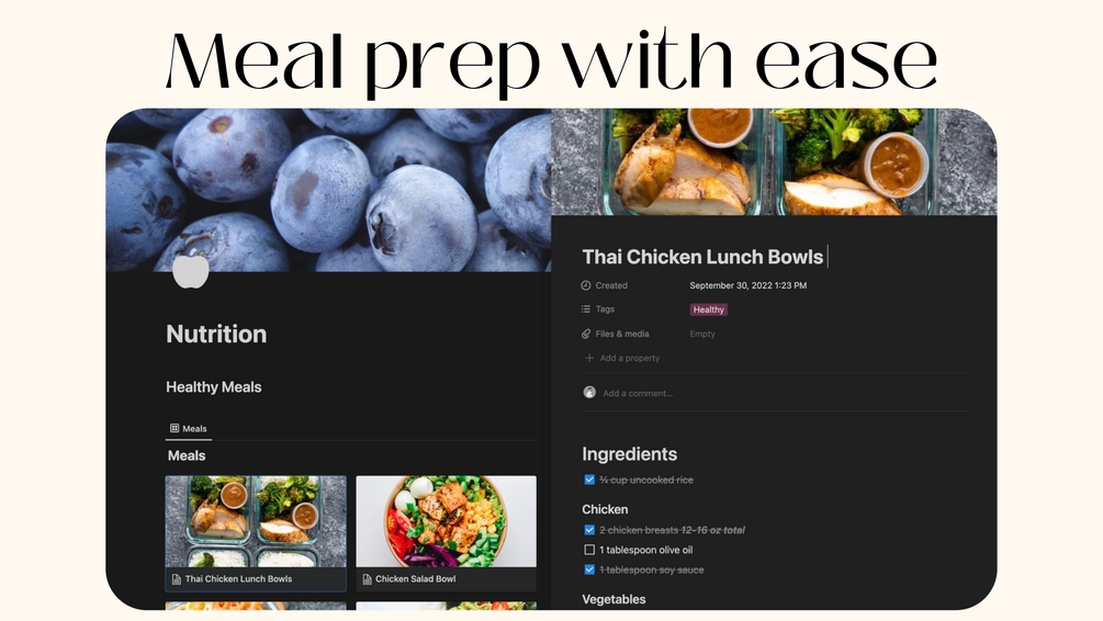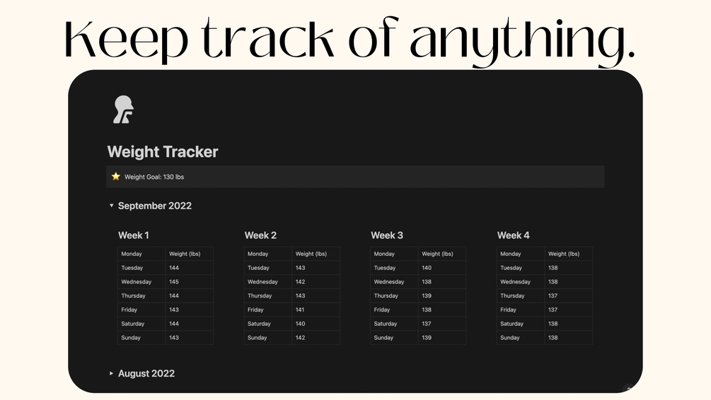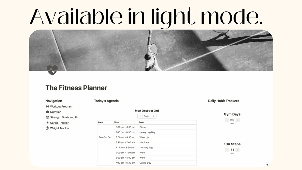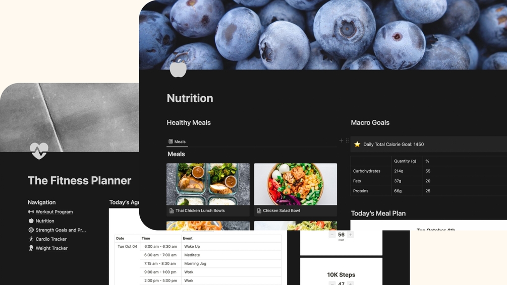 Need some motivation? This Notion Fitness Planner template will help you organize your workouts and meal plans, track your progress, and plan your events!